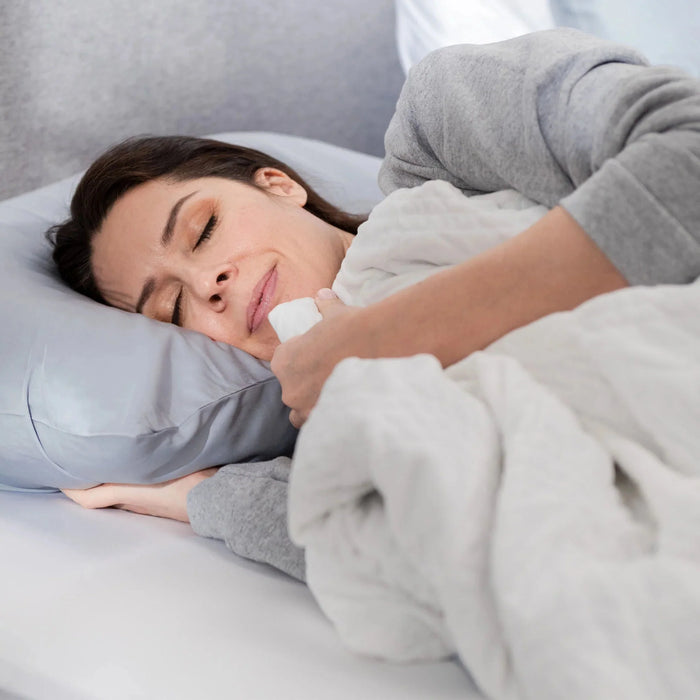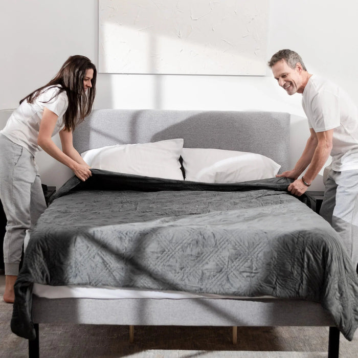 The even distribution of weight in our blanket means it feels like a gentle hug, all night long.  Mimicking a therapeutic technique called Deep Pressure Stimulation (DPS), this gentle pressure reduces cortisol (stress hormone) while increasing serotonin (happy hormone) and melatonin (sleepy hormone). End result: you fall asleep faster, stay asleep longer, and feel more rested after.