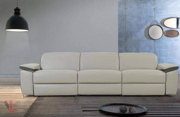 You can enjoy quality time with your loved ones in the ambience of refined modern elegance with the Aura Light Gray Leather Power Reclining Sofa. Each hide used for upholstery is as unique as a fingerprint. This designer sofa, with two power reclining seats offers a modular design to complement any occasion and personal space preference. Each piece is constructed with premium high-end materials for an ultimately luxurious look and feel. Attention to detail is highlighted by the rich two-tone contrasting dark gray linen accenting. Unmatched relaxation is just a finger touch away thanks to its power buttons and comfortable seat and adjustable headrests. These are original, one-of-a-kind articles to complement that special room in your house.