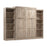 The Bestar Pur Queen Murphy Bed and 2 Shelving Units (115W) is the ideal space saver for a multipurpose room. The wall bed accommodates most standard Queen mattresses. Both shelving units come with 2 fixed and 3 adjustable shelves to hold your belongings. The dual-mount wall bed mechanism attaches to the floor and wall for ease of assembly and maximum stability and durability. The bed and cabinets must be anchored to a wall.