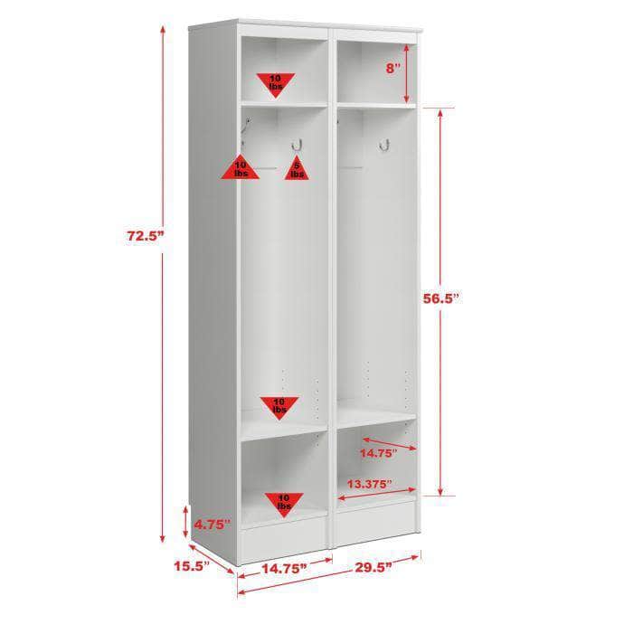 Assembled Dimensions: 29.5"W x 15.5"D x 72.5"H