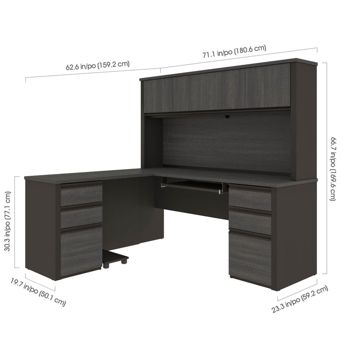 Prestige+ Modern L-Shaped Office Desk with Two Pedestals and Hutch - Available in 3 Colors