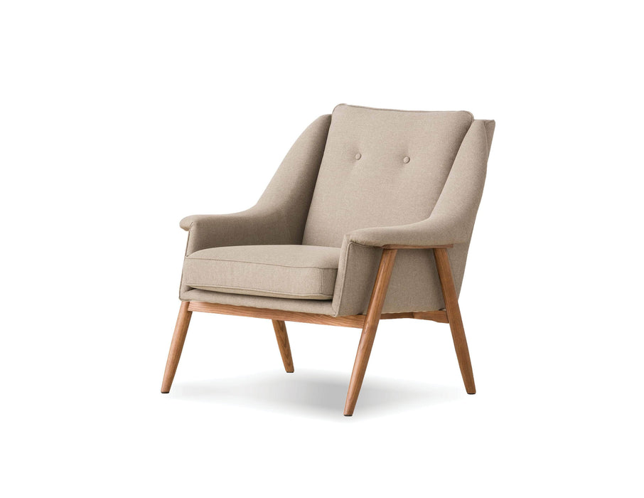 The Parry chair fits the bill for every decor scheme. Its Danish good looks and practical scale works in any environment. The legs are ashwood stained in natural walnut finish. Parry comes in two fabric options of a charcoal brushed cotton/poly pique for softness and durability or a warm sand polyester tweed.