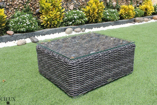 CIEUXDescription Items Included in This Listing: Coffee Table / Ottoman Base 8mm Tempered Glass Top Sunbrella Ottoman Cushion The Provence Ottoman / G...