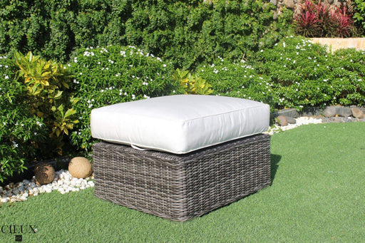 CIEUXDescription Items Included in This Listing: Coffee Table / Ottoman Base 8mm Tempered Glass Top Sunbrella Ottoman Cushion The Marseille Natural Ca...