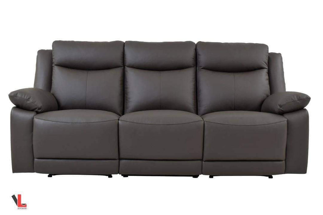 Volo Espresso Leather Reclining Sofa offers splendor comfort with an overdose of opulence. The reclining sofa is upholstered with a supple corrected leather upholstery where your body touches - on the seat, back and arm cushions. Leather match is used on the sides and back for increased durability. The outside seats recline using a conveniently placed lever on the side. This masterpiece provides the perfect relaxation and serenity that helps your mind to relax in tranquillity.