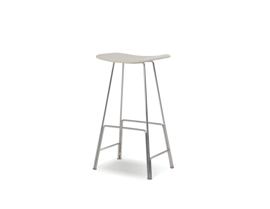 Designers cannot get enough of this stool. They love it for its simple design and its practicality, especially in small spaces. The top grain leather seat deck is nice and low like a saddle and allows for the stools to be completely tucked away under your kitchen island to make room.