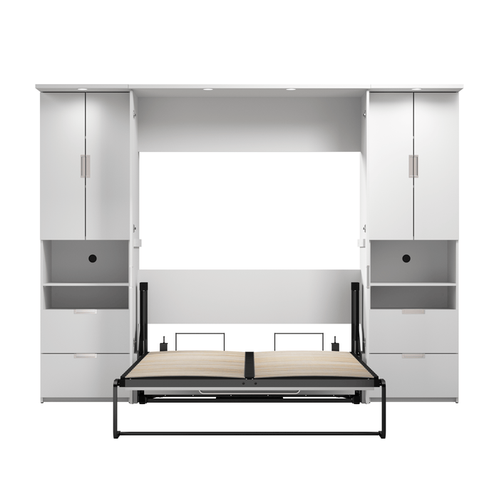 - GOOD QUALITY: Made in North America from quality laminated particle board compliant with TSCA Title VI. Set features 4 CSA-approved LED lights (120V). Mattress not included. Thanks to dual piston system, bed folds up and down safely.