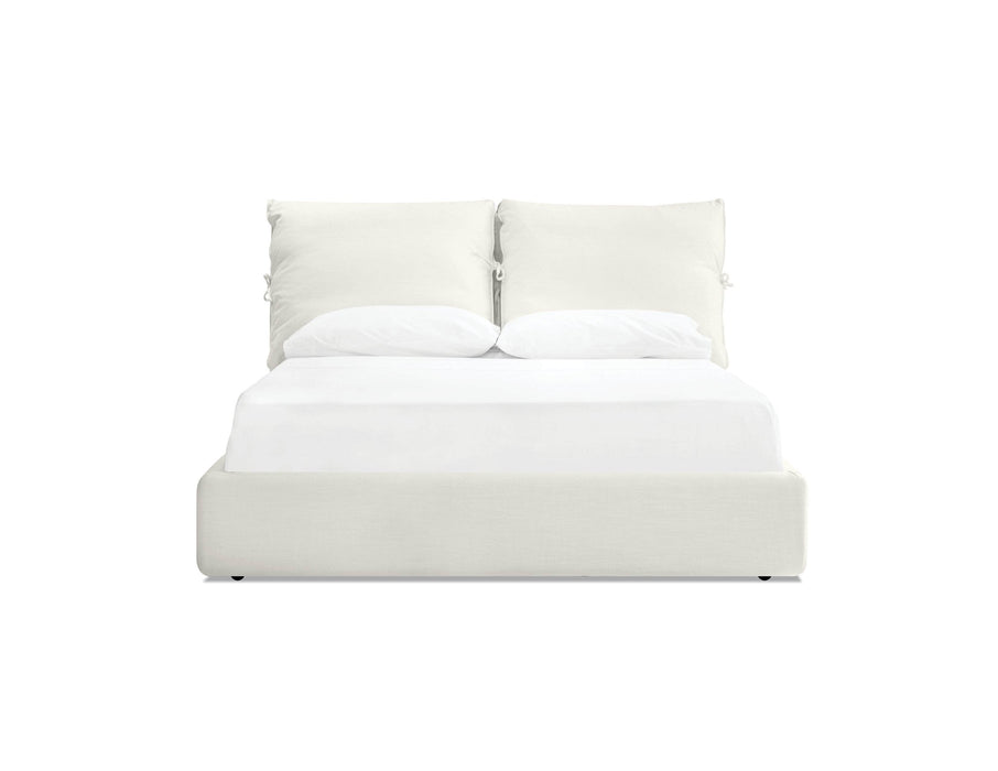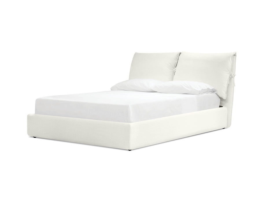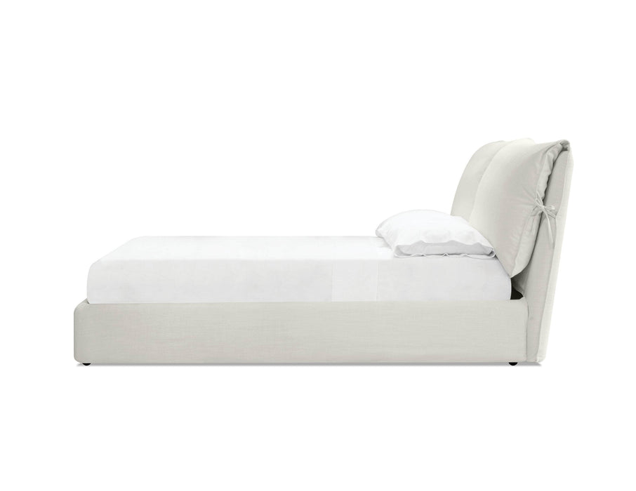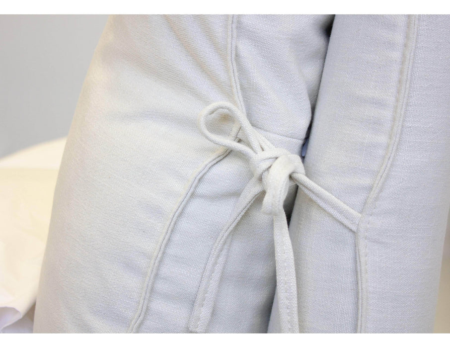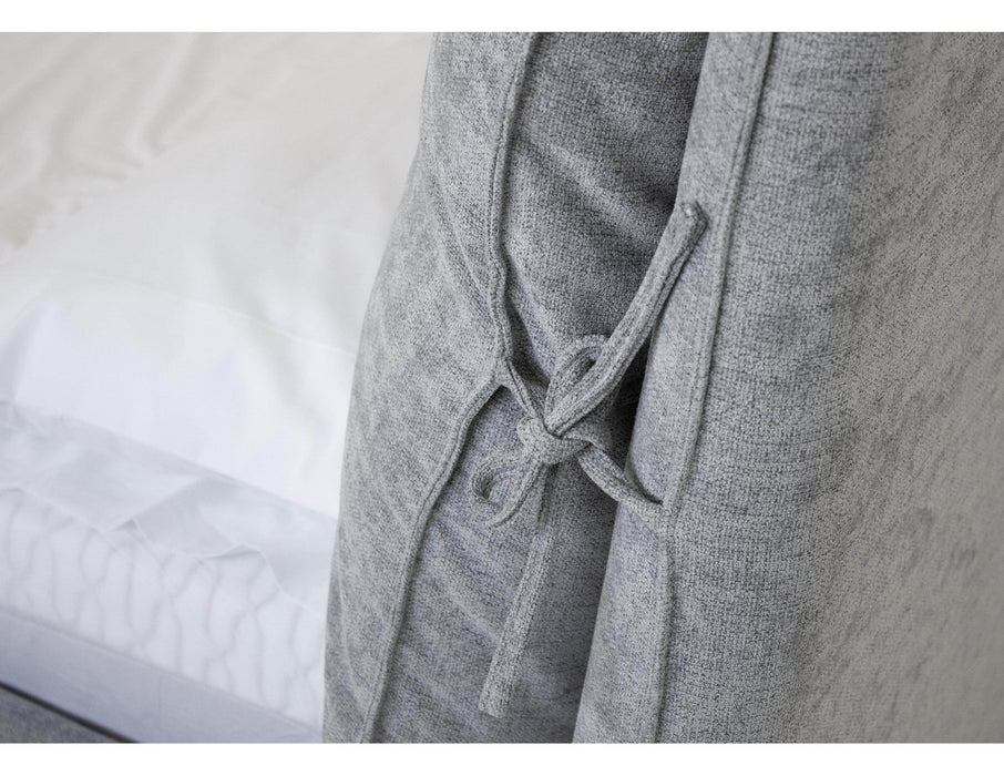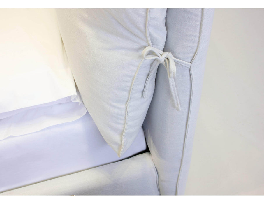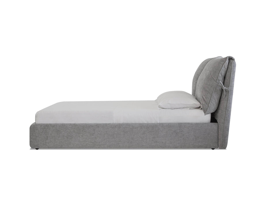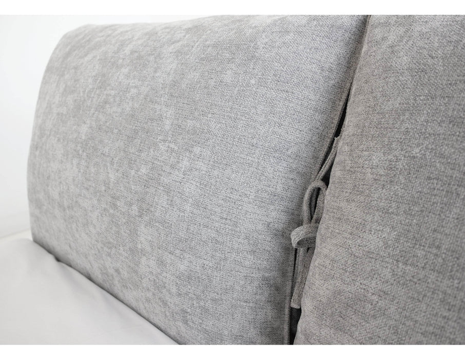 When you think of a feather bed and how luxurious the sleep will be, we instantly found the name for this bed; Plume. The two extra large pillows are attached with tie-offs and make the perfect headboard to sit up in bed and watch TV, read a book or play on your phone. Available in two fashion colors of cream linen or heather gray Chenille.